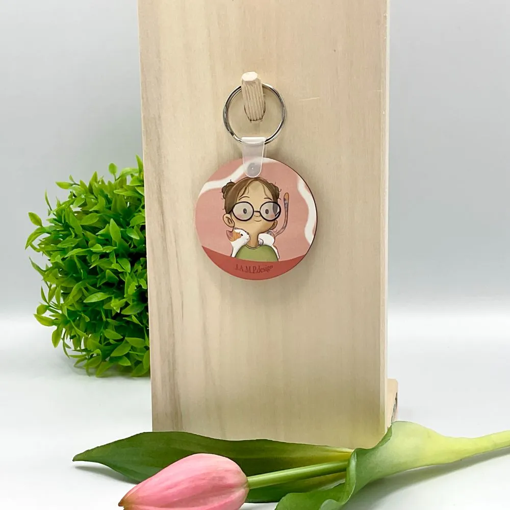 Egyedi grafikával készült, 5 cm átmérőjű, mindkét oldalon illusztrált kulcstartó. A kulcstartó anyag fa, speciális szublimációs réteggel ellátva. Rendkívül kopásálló. Az illusztráció nem fakul ki.