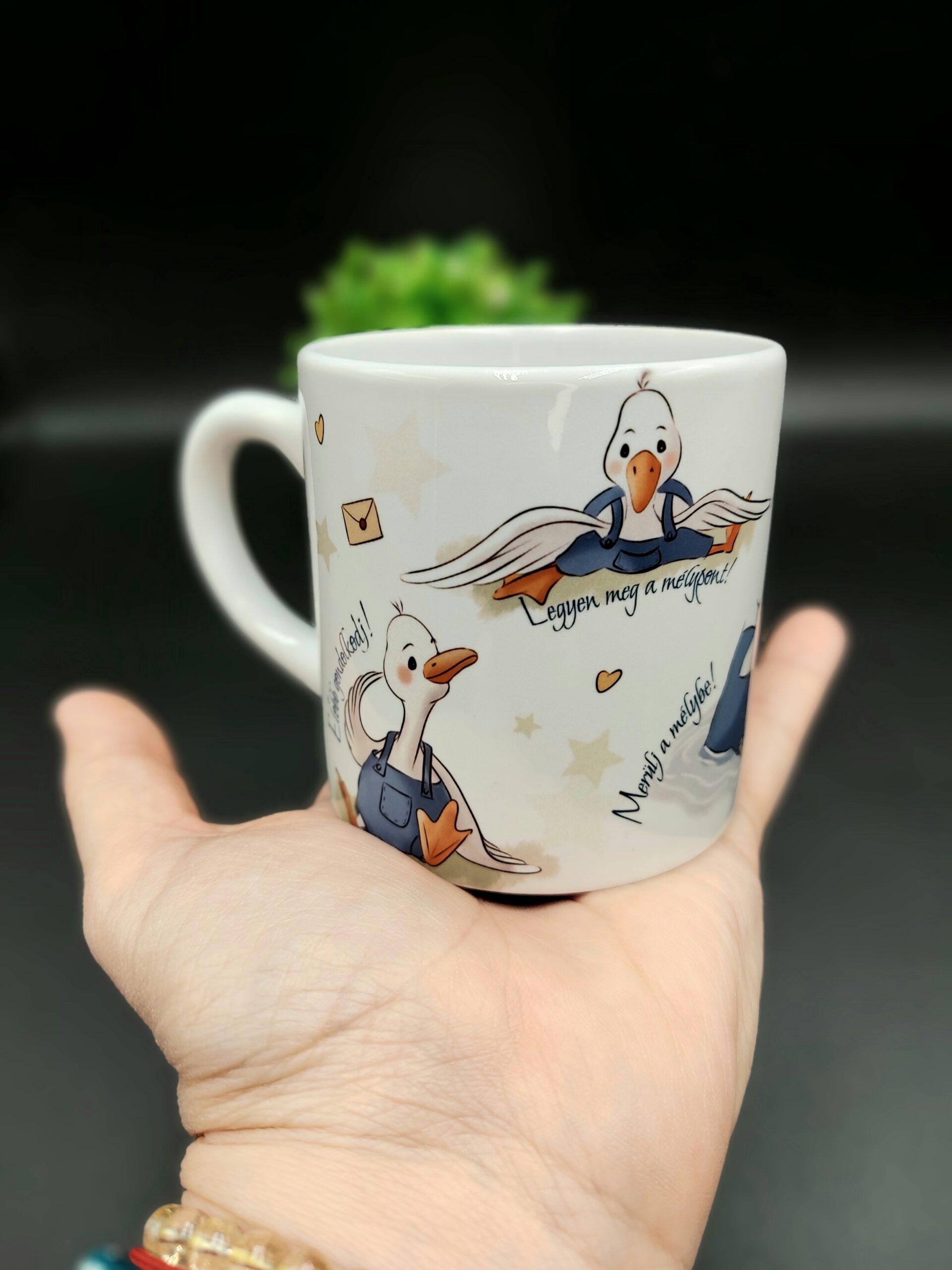 A motivációs mini bögre nemcsak egy használati tárgy, hanem egy kedves napi emlékeztető arra, hogy minden nap tartogat valami csodát. A liba minta kedves, szerethető, így gyerekeknek és felnőtteknek egyaránt remek választás.