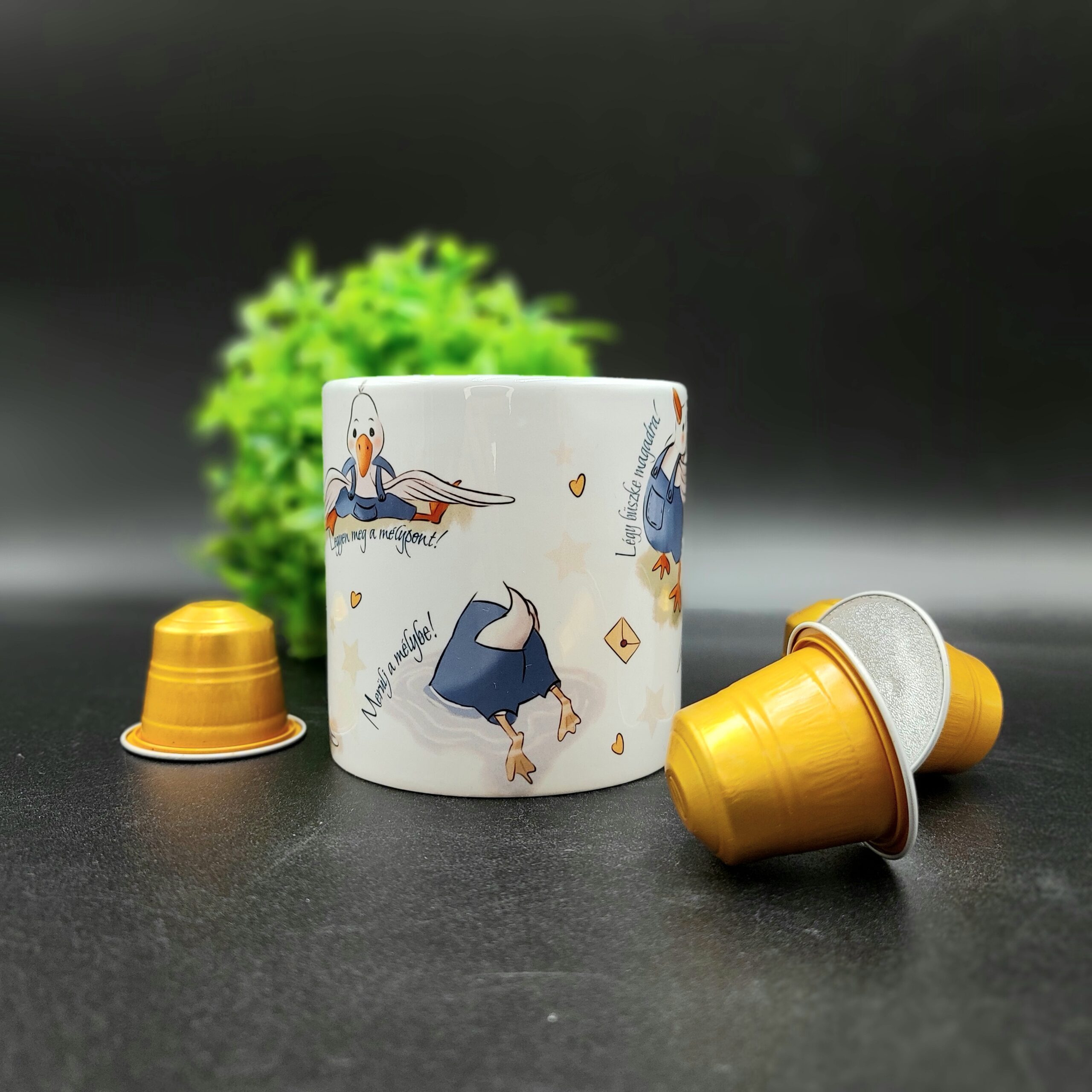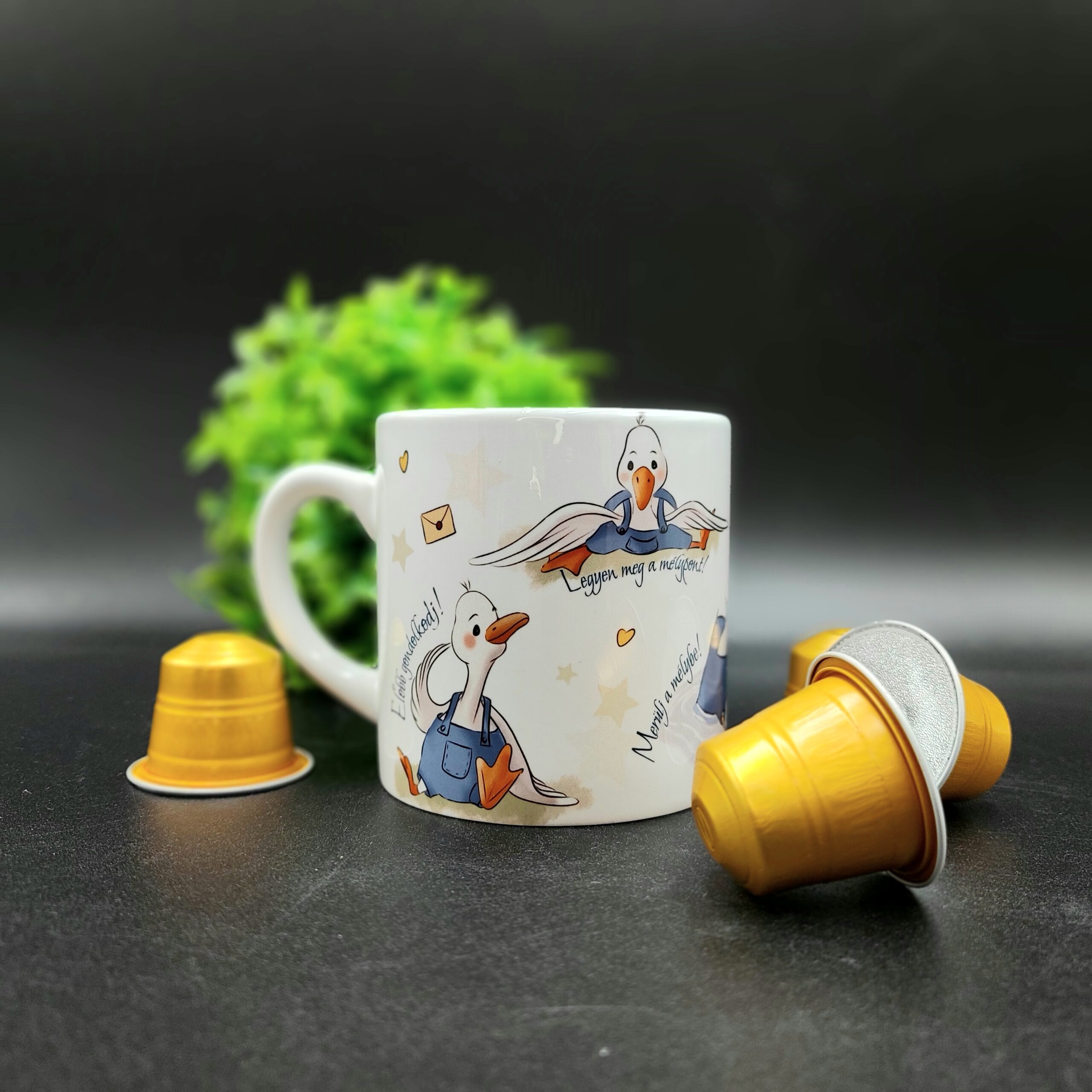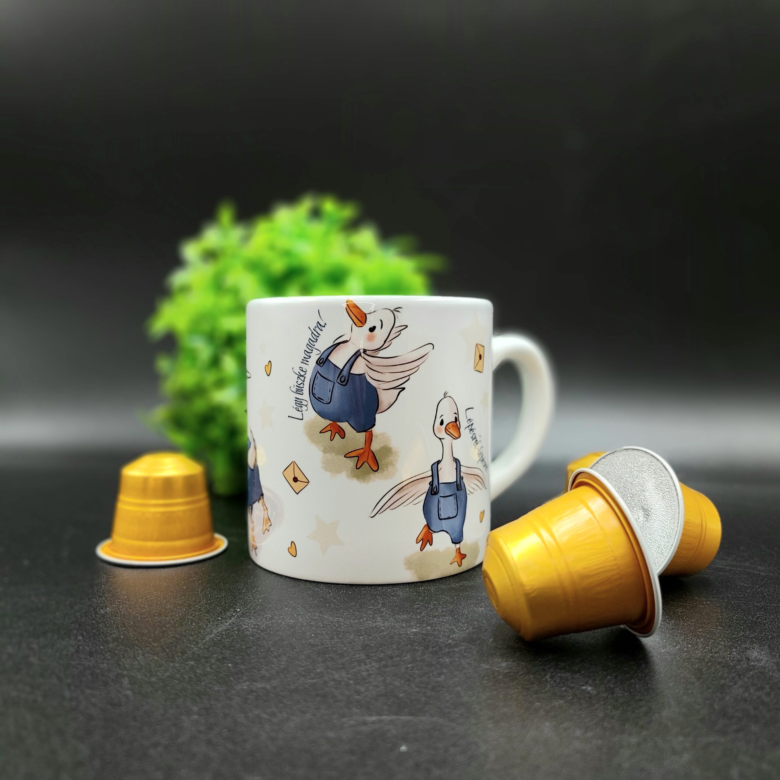 Kell egy kis extra lendület reggelente? Ez a motivációs mini bögre egyedi libás illusztrációval nemcsak praktikus, hanem vidámságot és lendületet ad a reggelekhez. A kedves, saját tervezésű liba grafika és az inspiráló hangulat tökéletes választás kávéhoz, eszpresszóhoz vagy teához – akár otthon, akár az irodában.